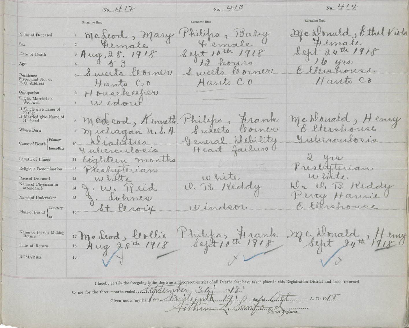 Female Death Registration: Year: 1918 book: 35 page: 487 number: 412