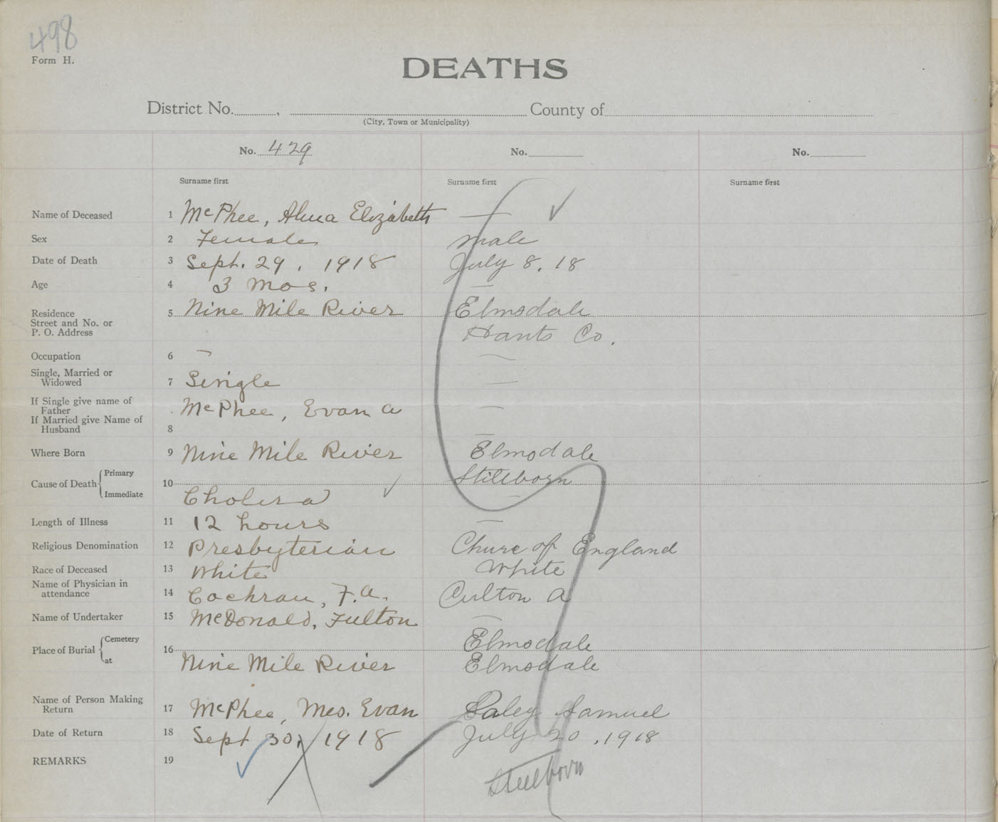 Female Death Registration: Year: 1918 book: 35 page: 498 number: 429