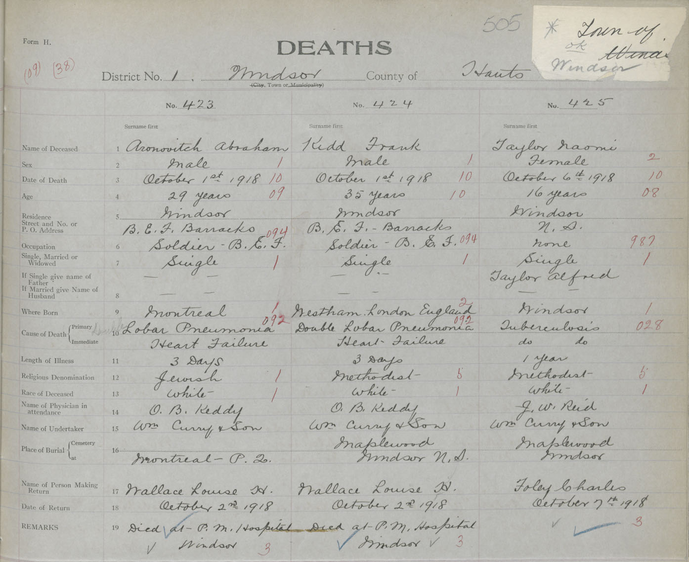 1. PLACE OF DEATH County of Hants If in City or Town Windsor