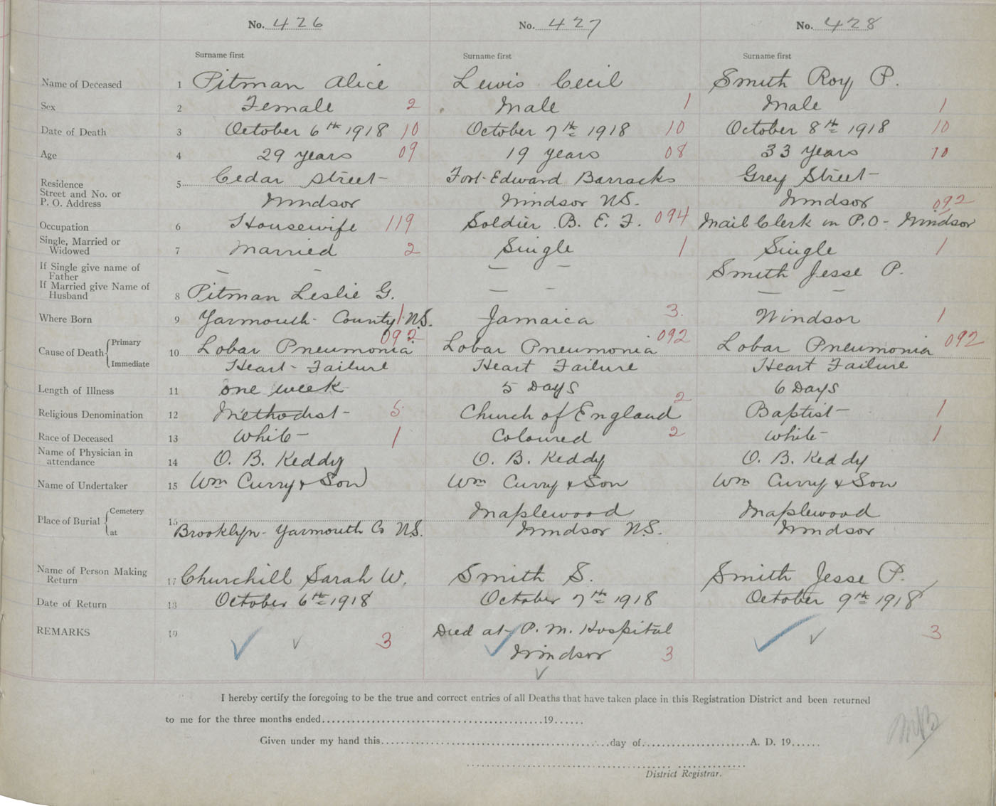 1. PLACE OF DEATH County of Hants If in City or Town Windsor