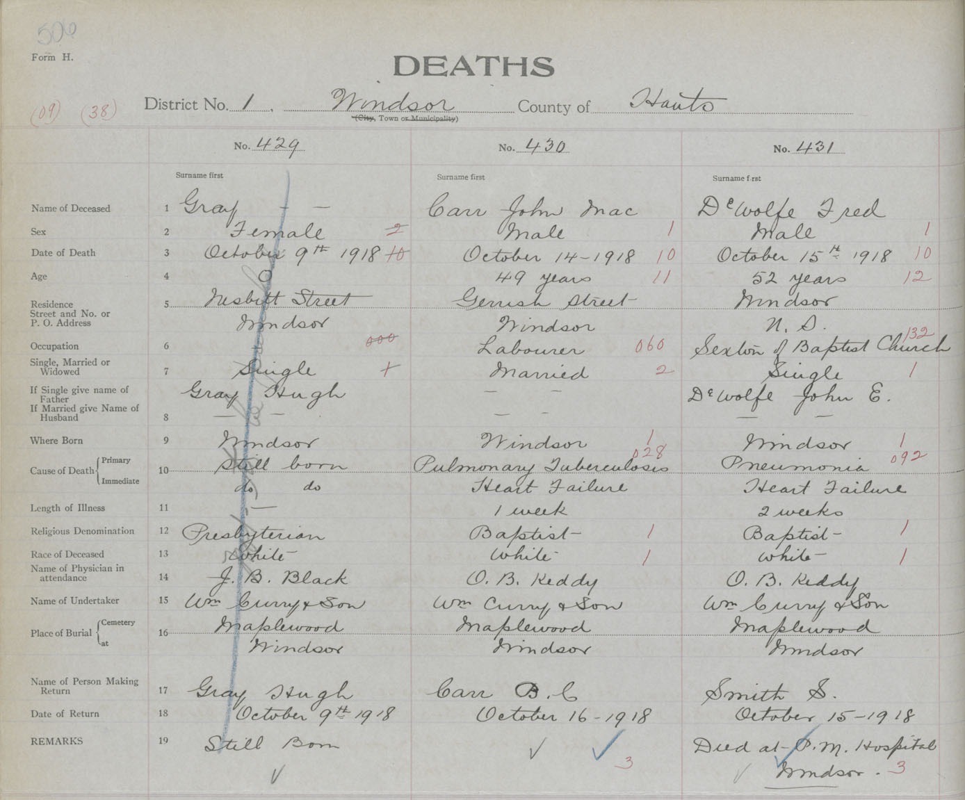 Female Death Registration: Year: 1918 book: 35 page: 506 number: 429
