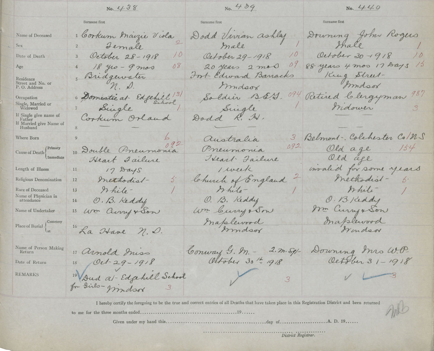1. PLACE OF DEATH County of Hants If in City or Town Windsor