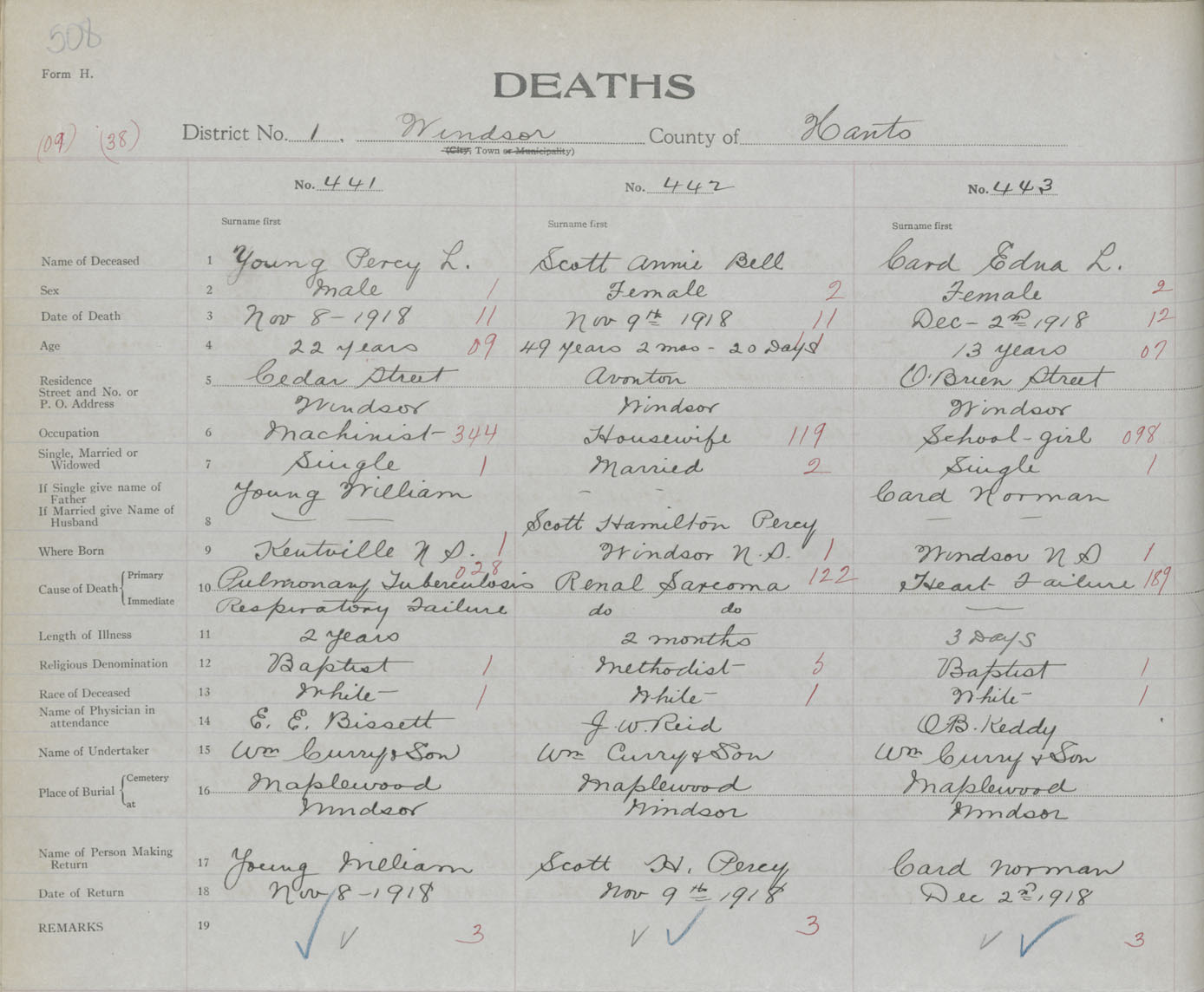 Male Death Registration: Year: 1918 book: 35 page: 508 number: 441
