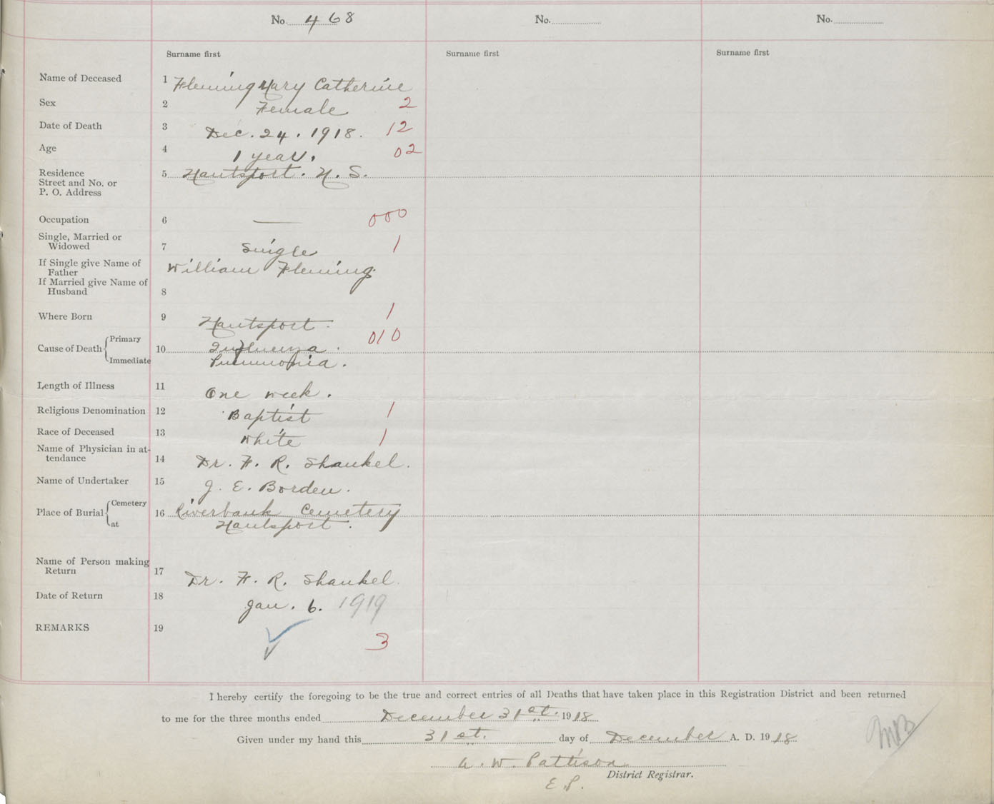 Female Death Registration: Year: 1918 book: 35 page: 515 number: 468