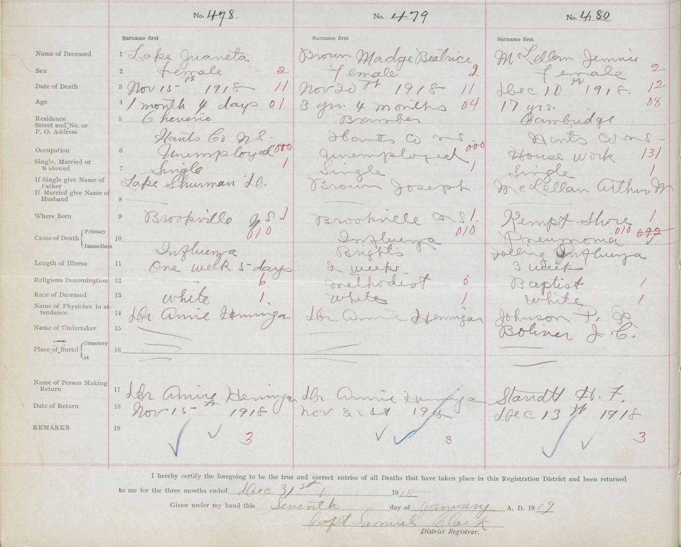 Female Death Registration: Year: 1918 book: 35 page: 518 number: 478