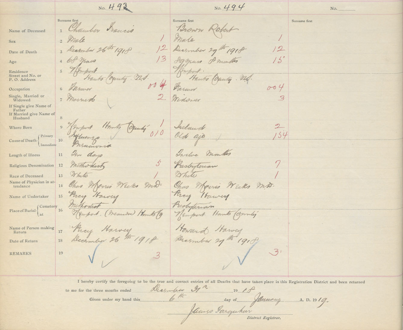 Male Death Registration: Year: 1918 book: 35 page: 522 number: 494