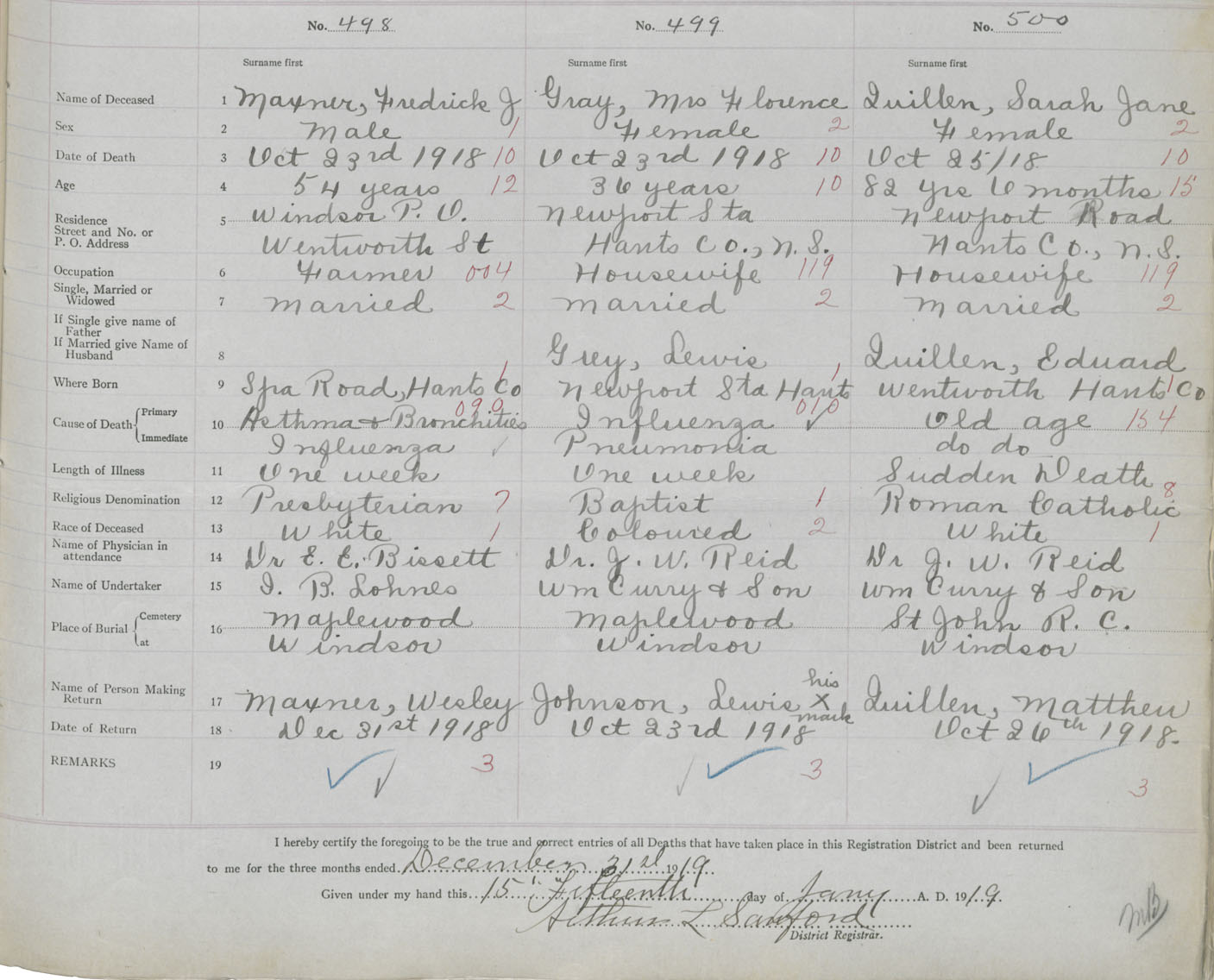 Female Death Registration: Year: 1918 book: 35 page: 523 number: 500