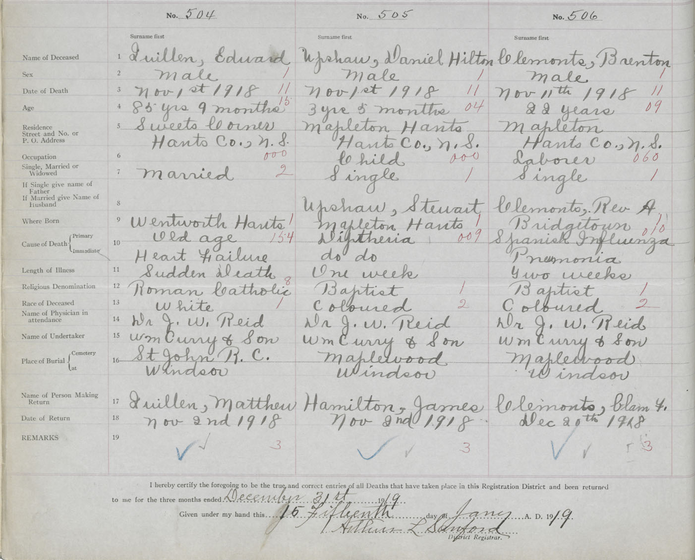 Male Death Registration: Year: 1918 book: 35 page: 524 number: 506
