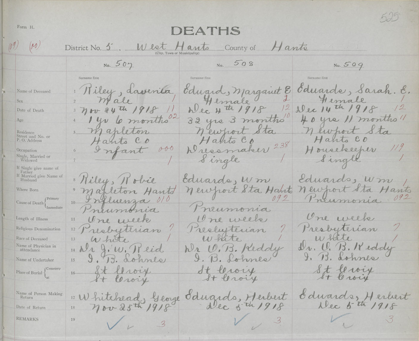 Female Death Registration: Year: 1918 book: 35 page: 525 number: 509
