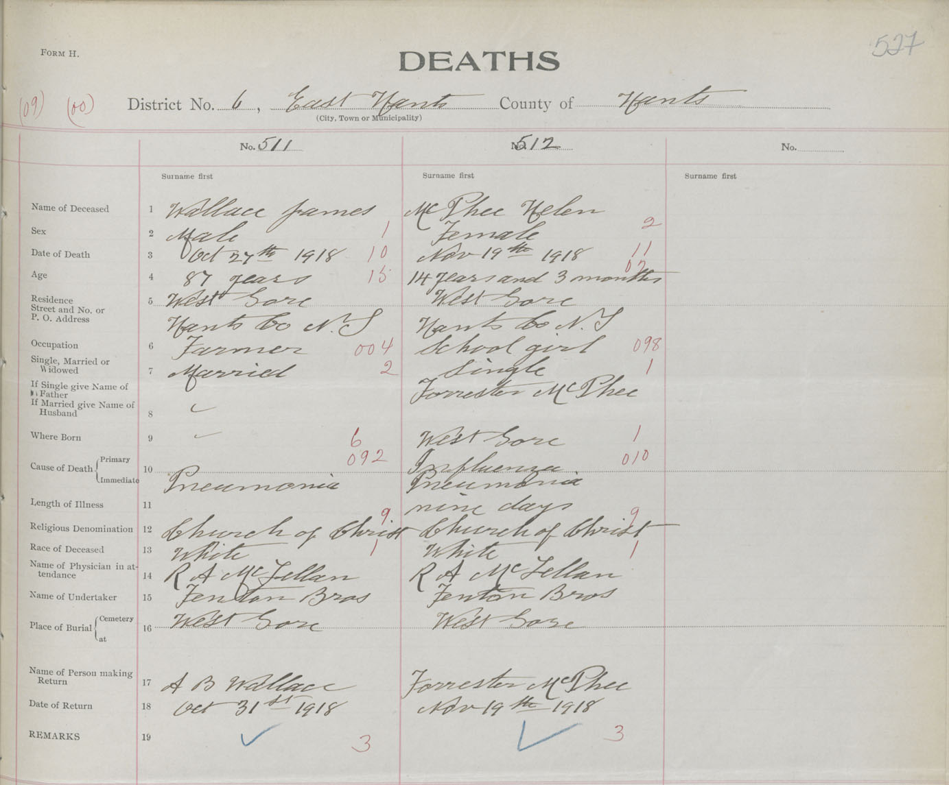 Male Death Registration: Year: 1918 book: 35 page: 527 number: 512