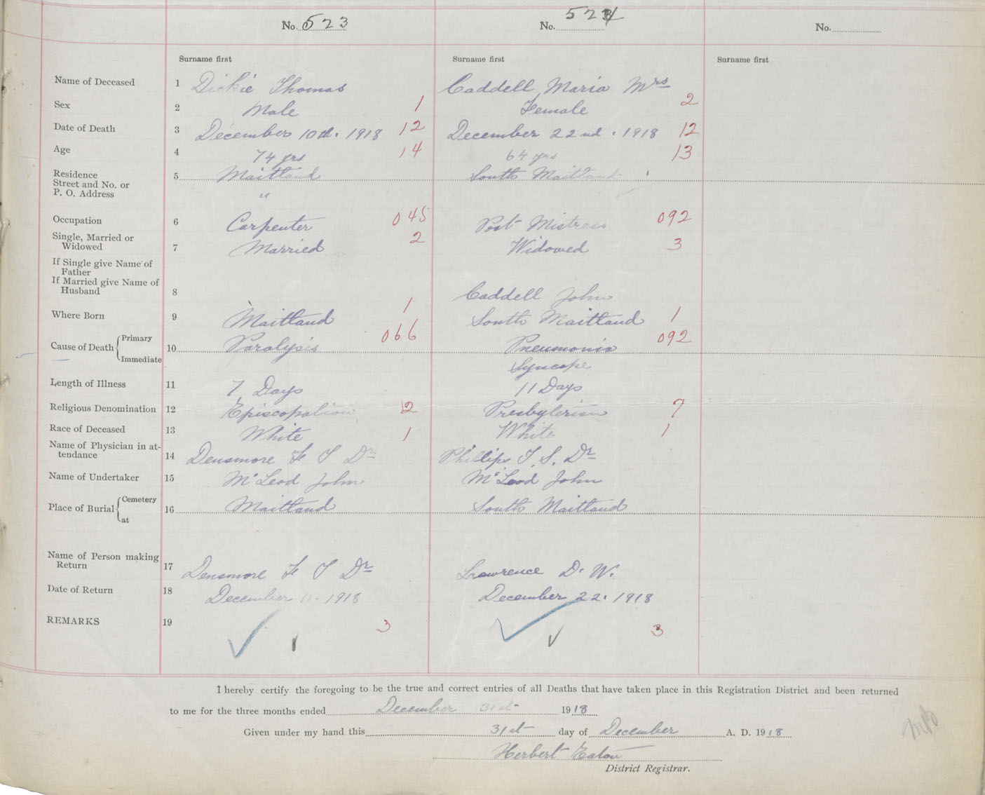 Female Death Registration: Year: 1918 book: 35 page: 535 number: 524