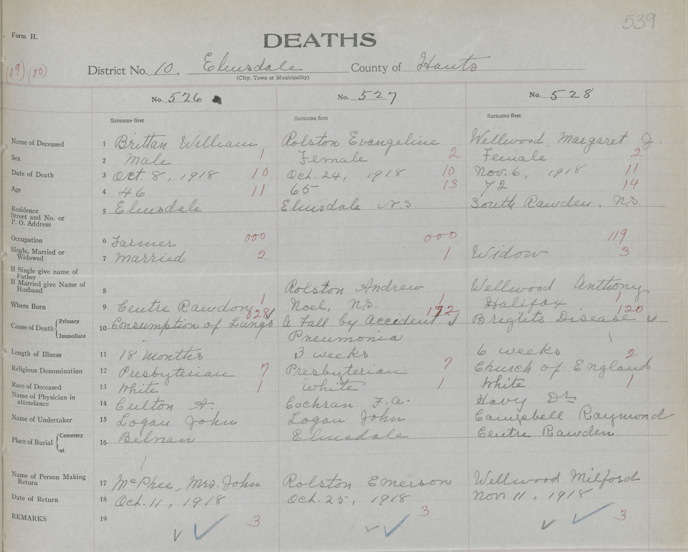 Female Death Registration: Year: 1918 book: 35 page: 539 number: 528
