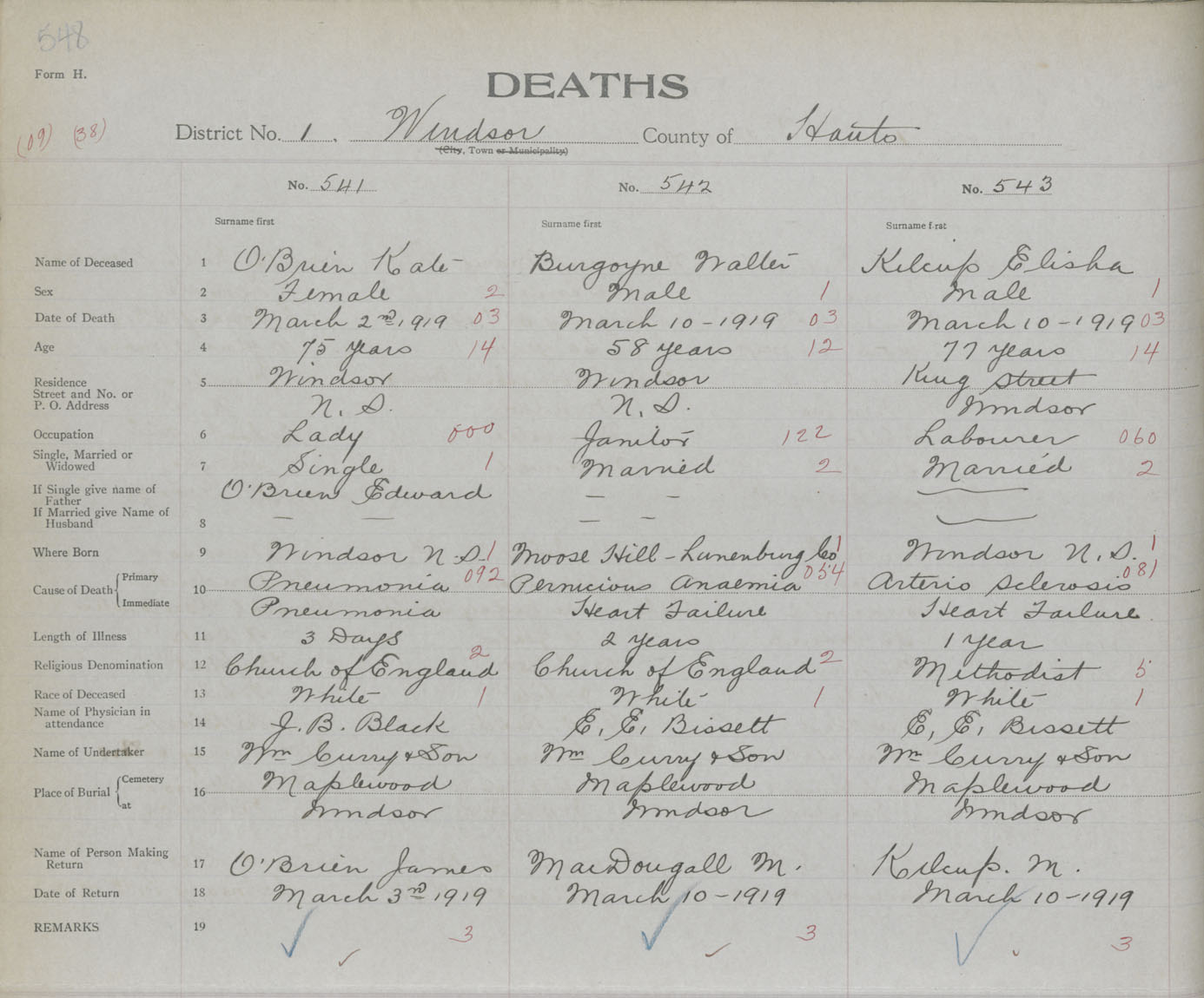Male Death Registration: Year: 1919 book: 35 page: 548 number: 543