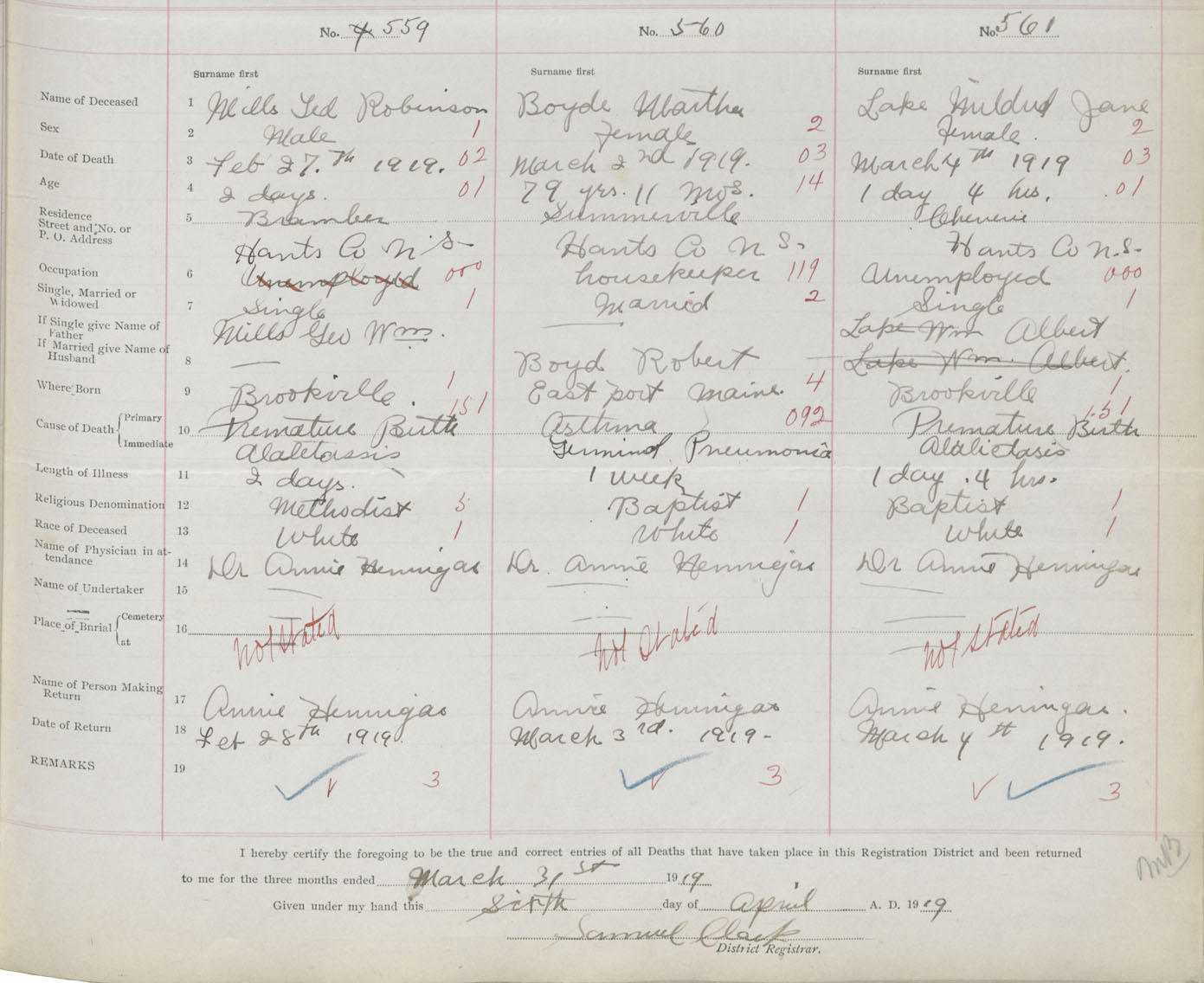 Female Death Registration: Year: 1919 book: 35 page: 553 number: 561