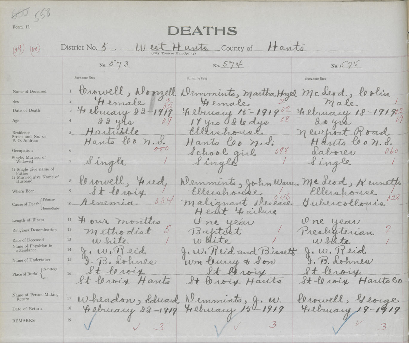 Male Death Registration: Year: 1919 book: 35 page: 558 number: 575