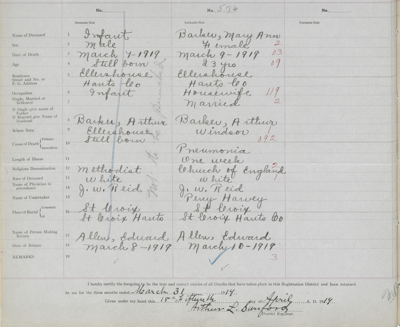Female Death Registration: Year: 1919 book: 35 page: 558 number: 576