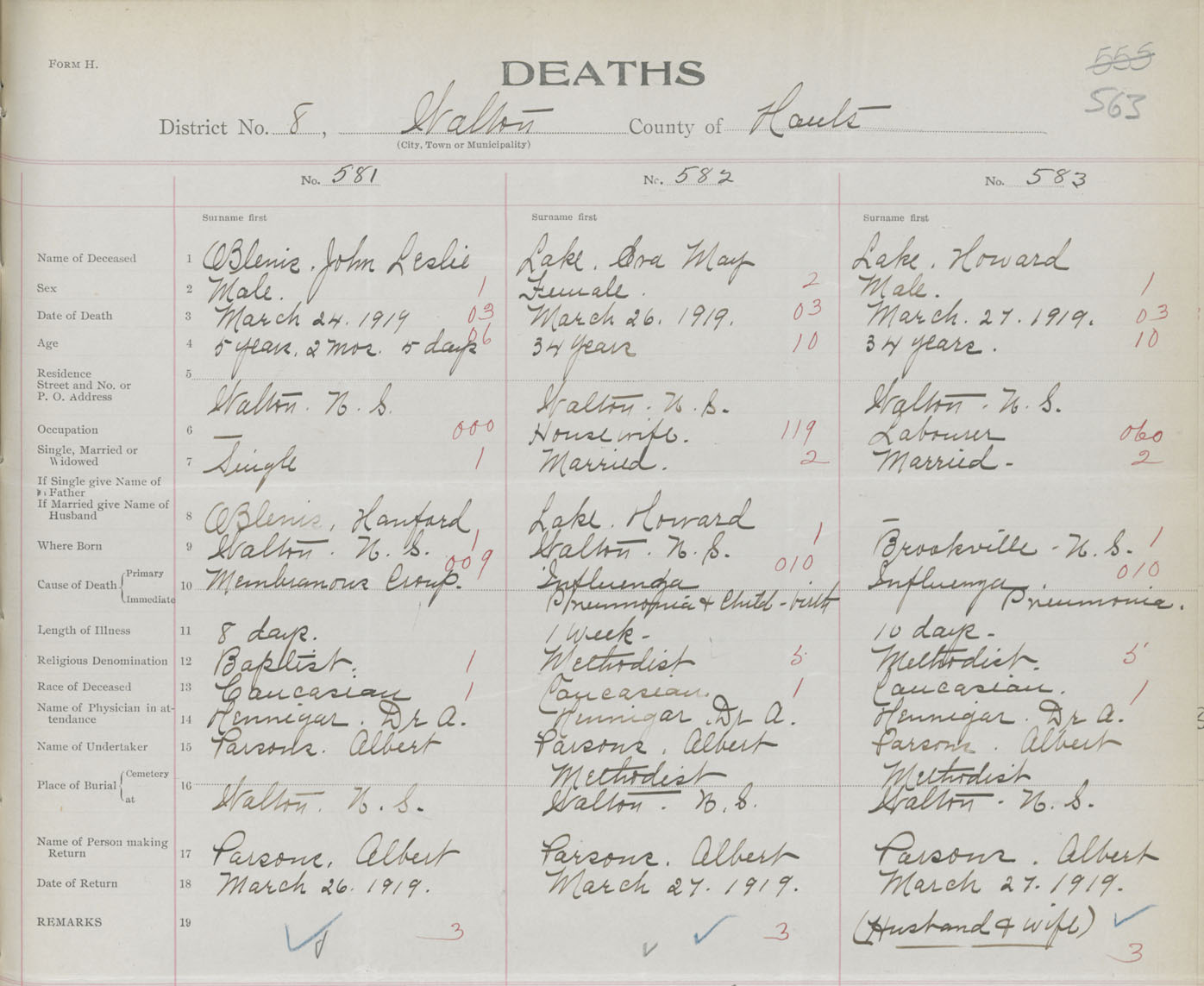 Male Death Registration: Year: 1919 book: 35 page: 563 number: 583
