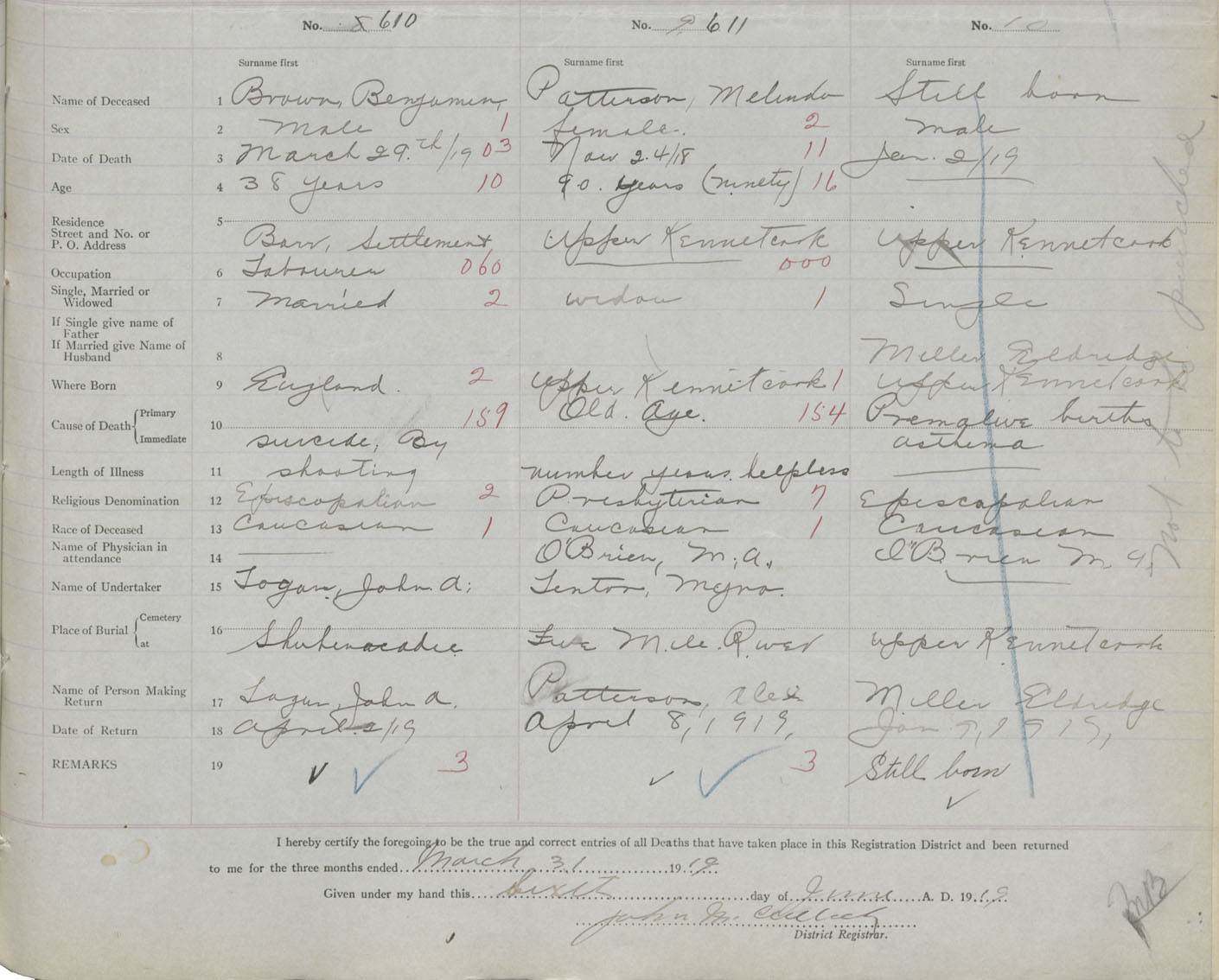 Female Death Registration: Year: 1919 book: 35 page: 573 number: 611