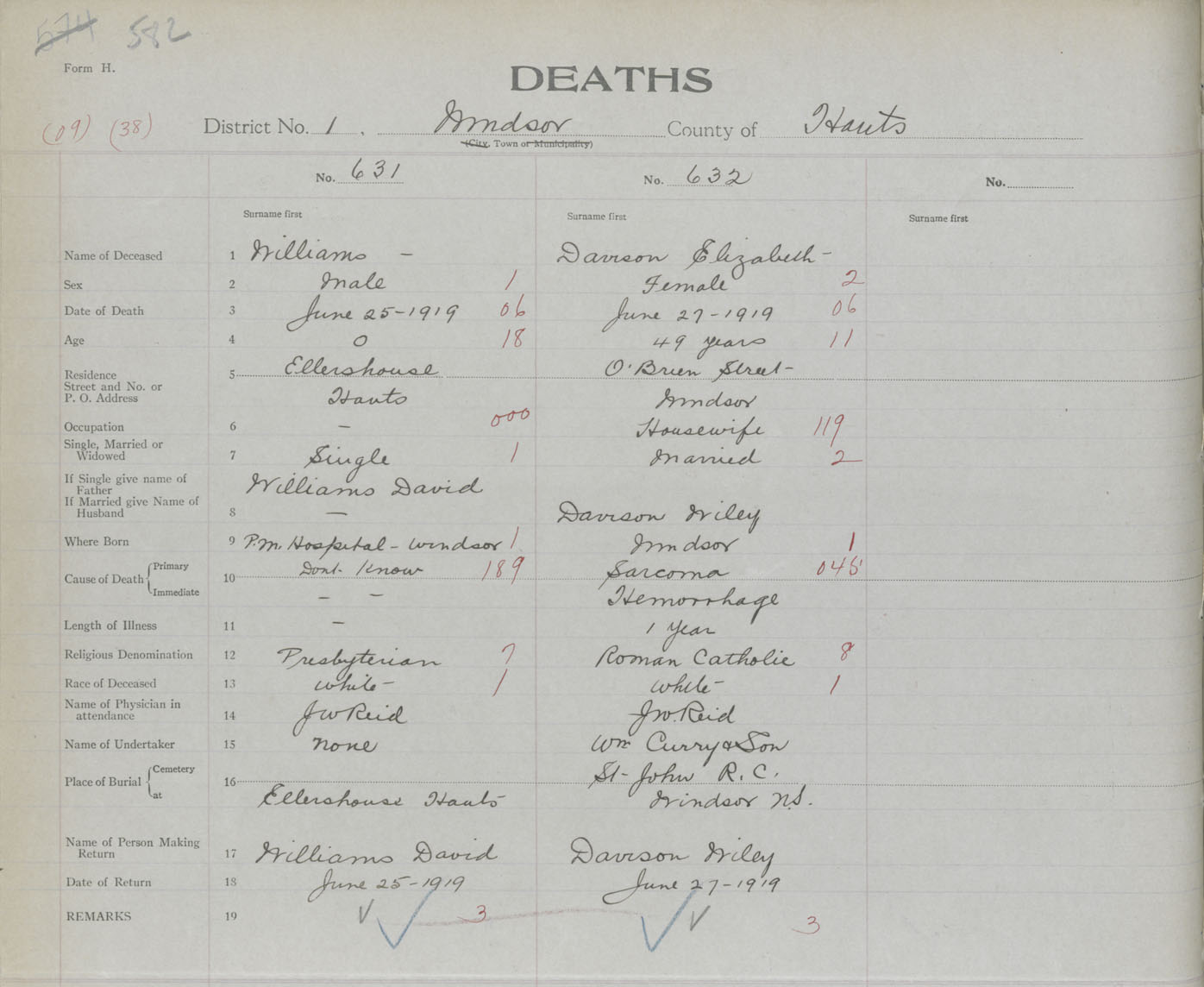 Female Death Registration: Year: 1919 book: 35 page: 582 number: 632