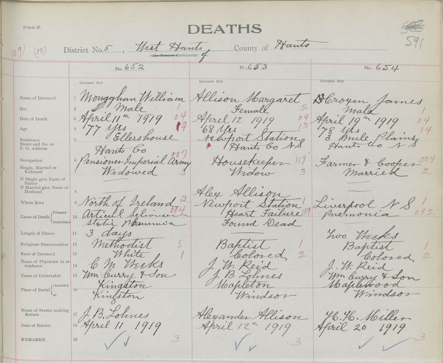 Male Death Registration: Year: 1919 book: 35 page: 591 number: 654