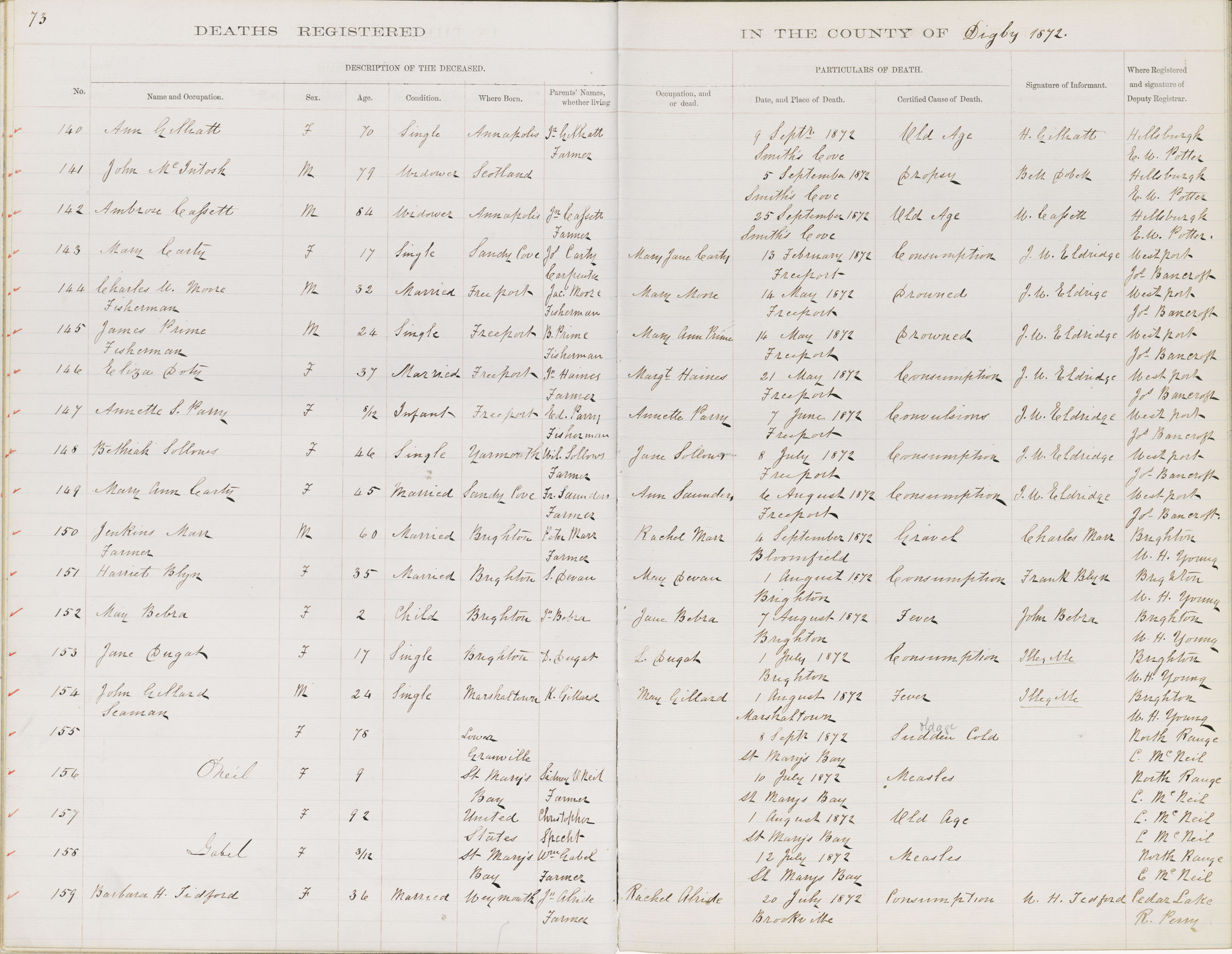 Death Registration: Year: 1872 book: 1806 page: 73 number: 140