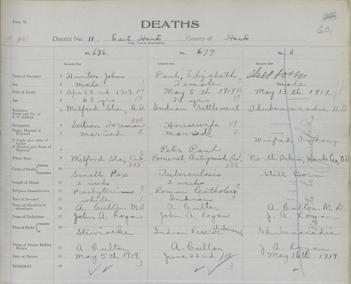 Female Death Registration: Year: 1919 book: 35 page: 601 number: 677