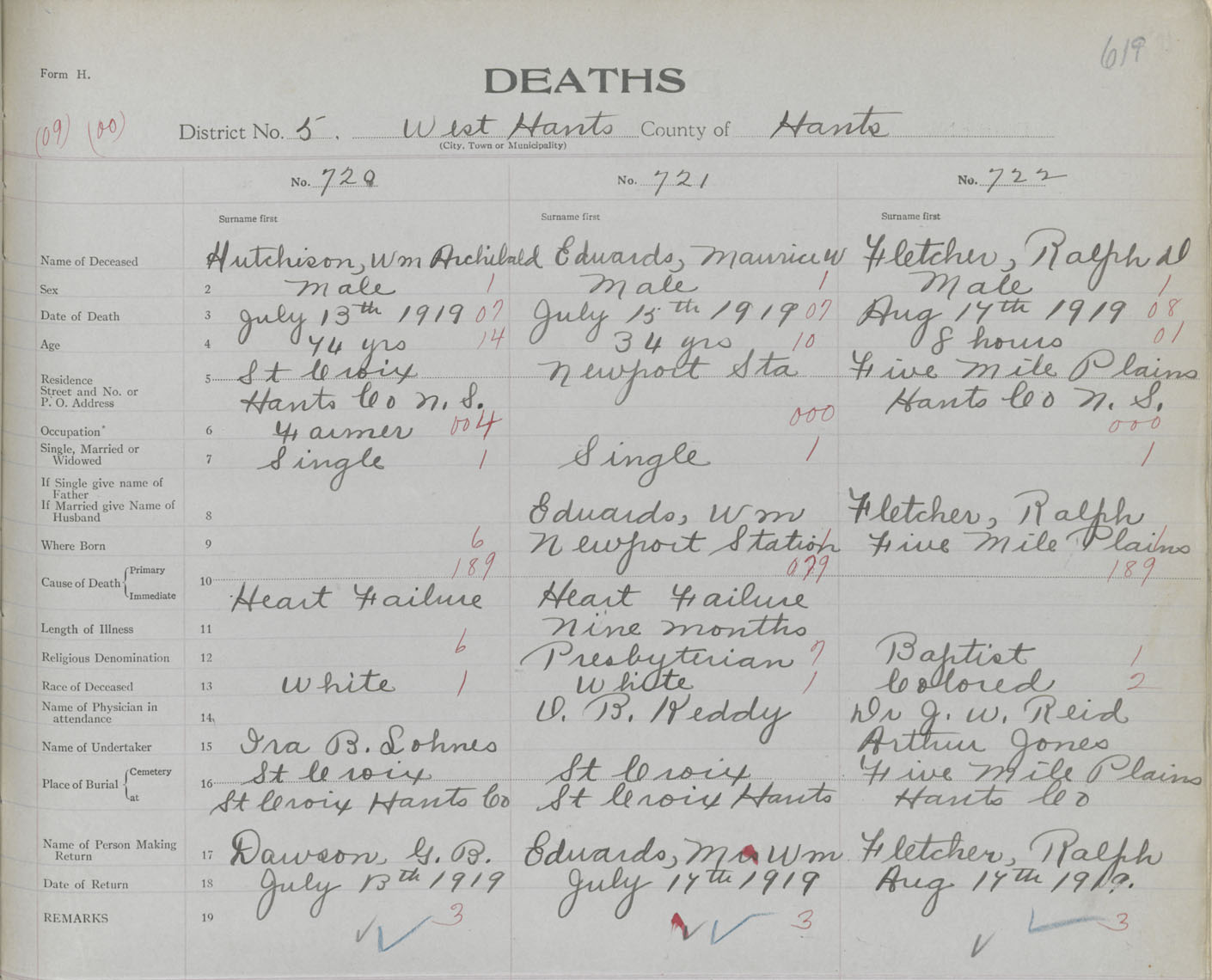 Male Death Registration: Year: 1919 book: 35 page: 619 number: 720
