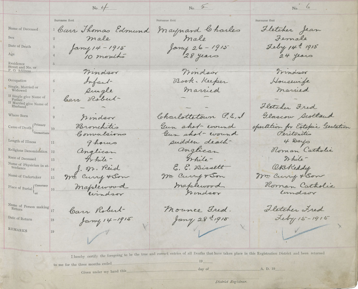 Male Death Registration: Year: 1915 book: 36 page: 1 number: 4