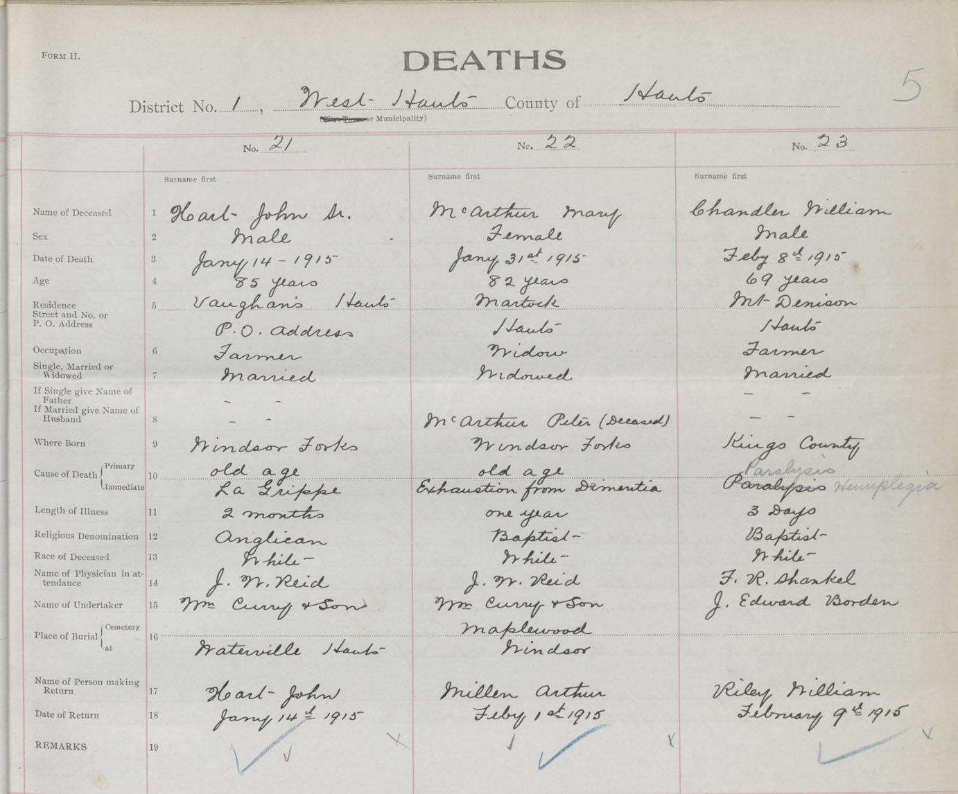 Male Death Registration: Year: 1915 book: 36 page: 5 number: 21