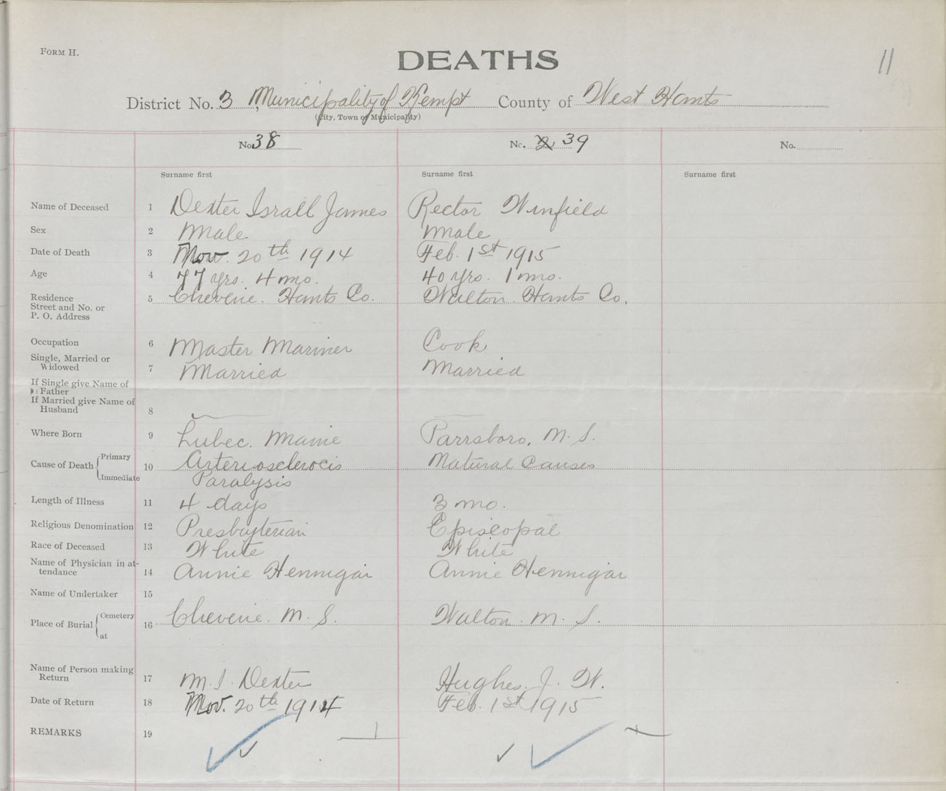 Male Death Registration: Year: 1914 book: 36 page: 11 number: 38