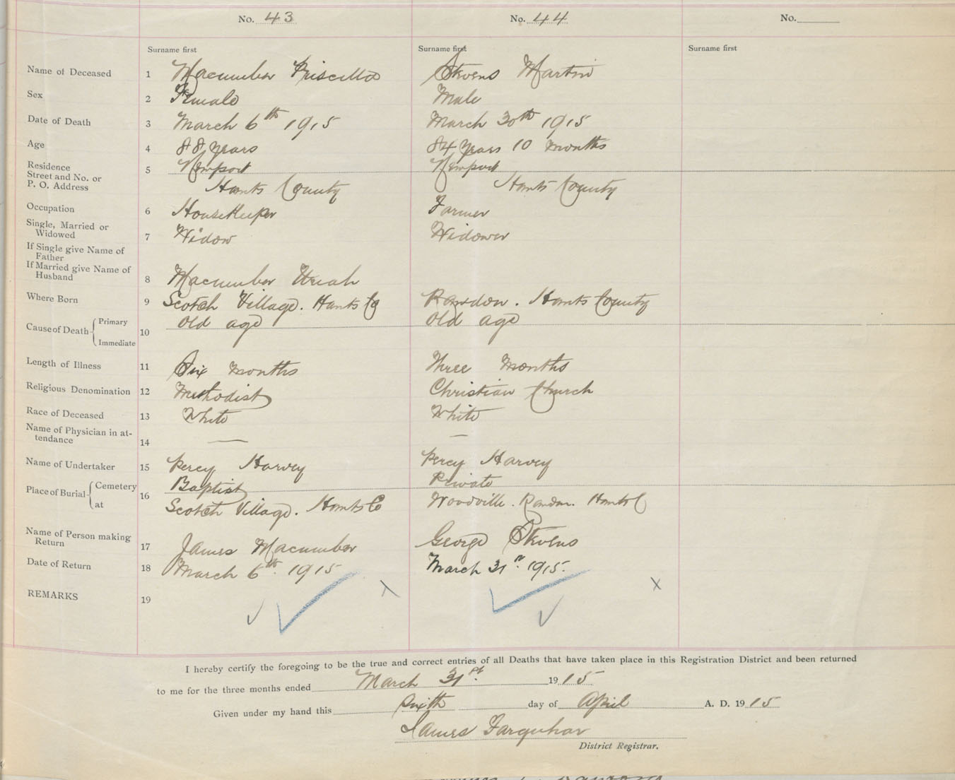 Male Death Registration: Year: 1915 book: 36 page: 13 number: 44