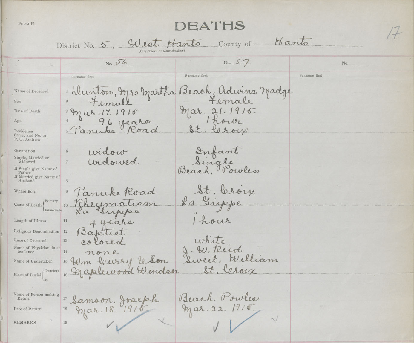 Female Death Registration: Year: 1915 book: 36 page: 17 number: 57