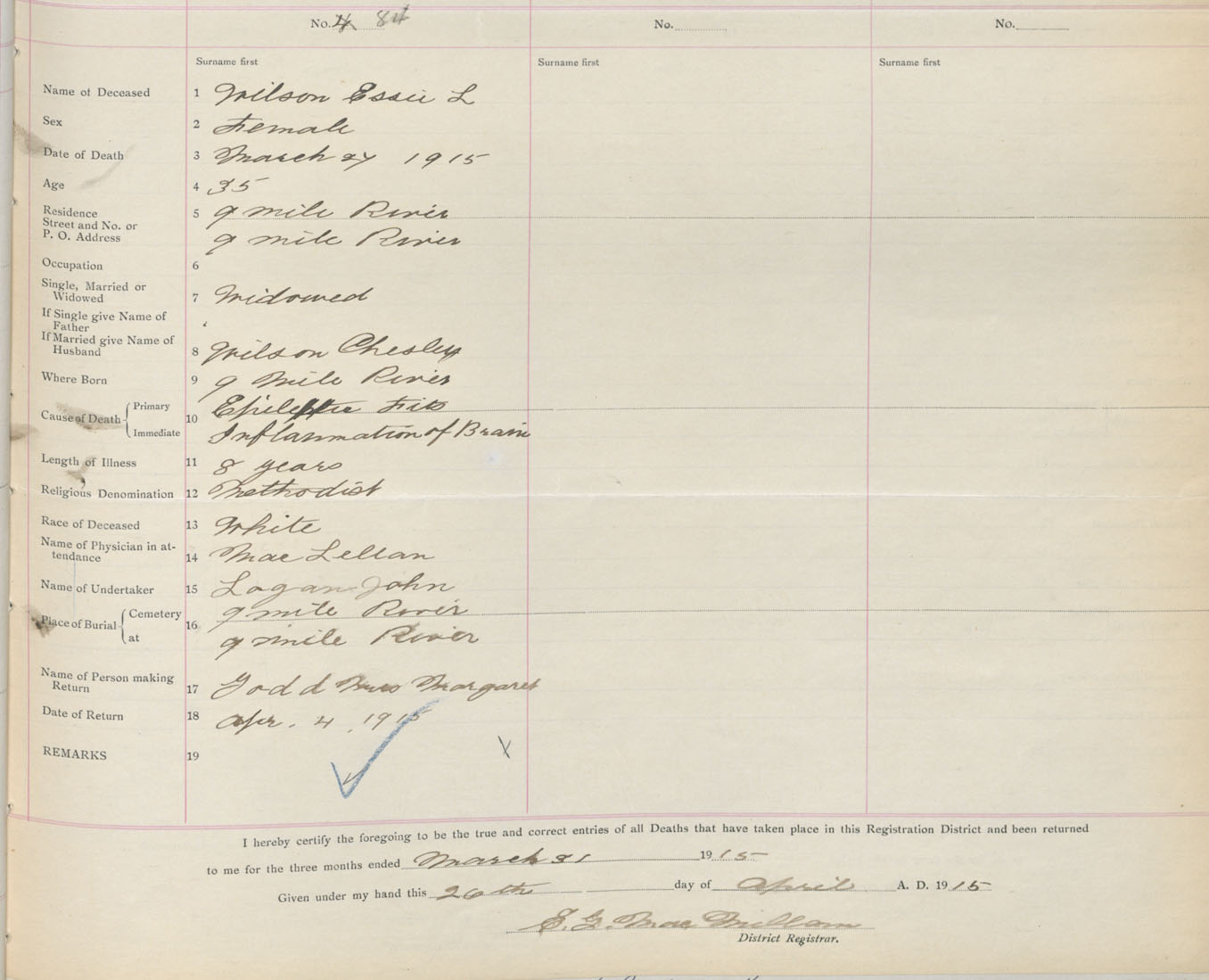 Female Death Registration: Year: 1915 book: 36 page: 31 number: 84