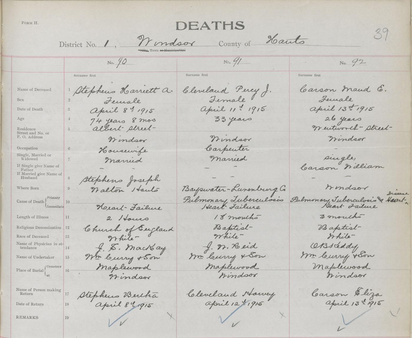 Female Death Registration: Year: 1915 book: 36 page: 39 number: 90