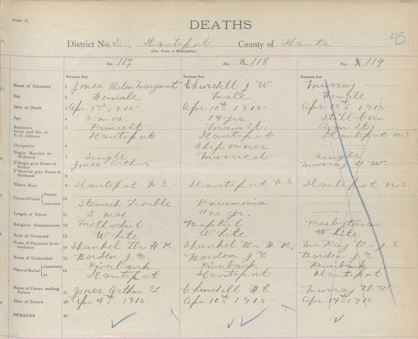 Female Death Registration: Year: 1915 book: 36 page: 45 number: 117