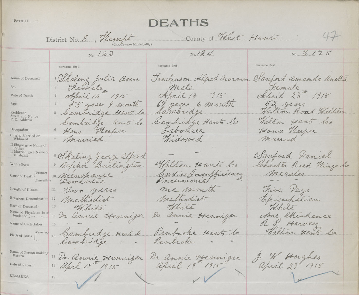 Female Death Registration: Year: 1915 book: 36 page: 47 number: 125