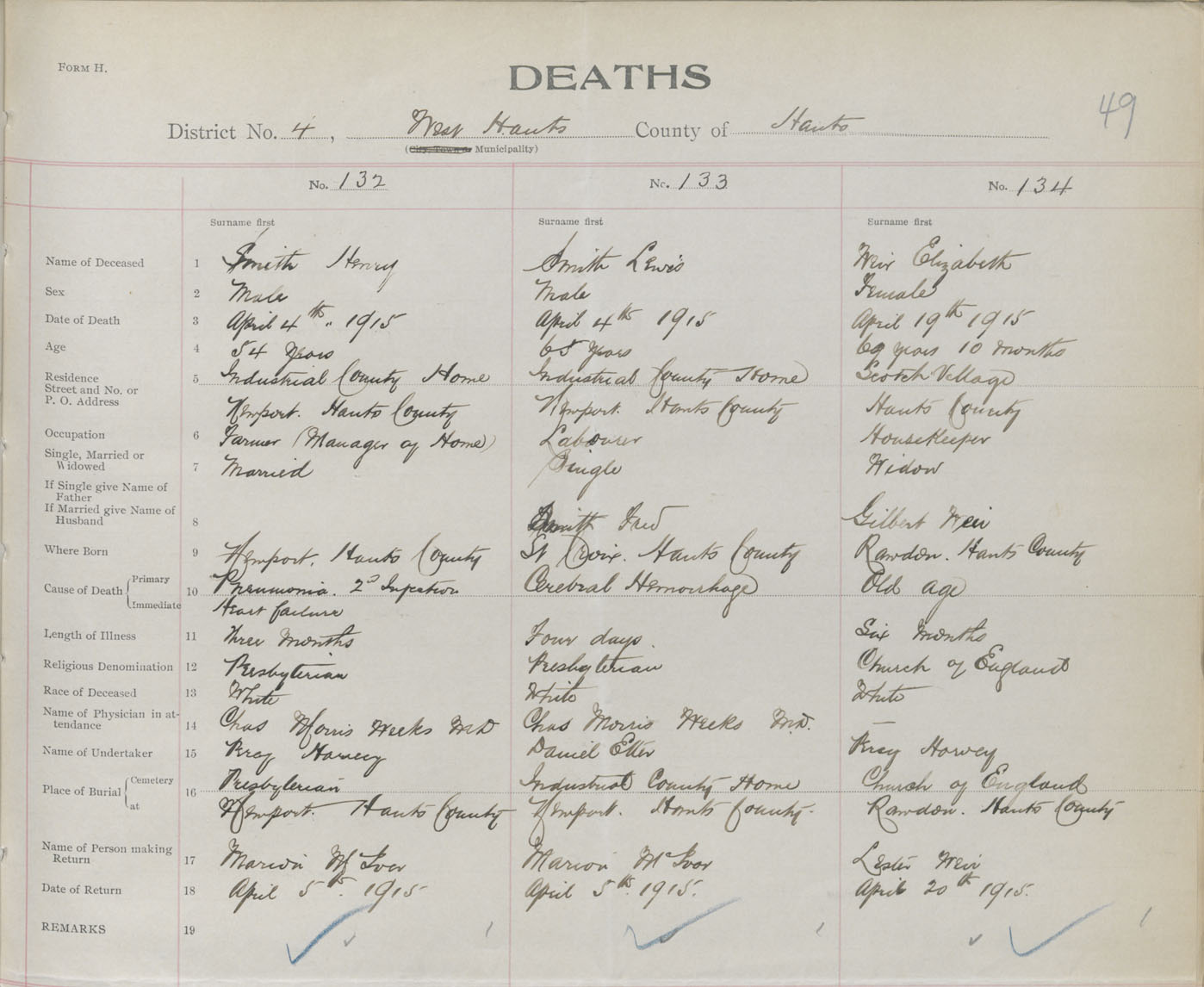 Female Death Registration: Year: 1915 book: 36 page: 49 number: 134