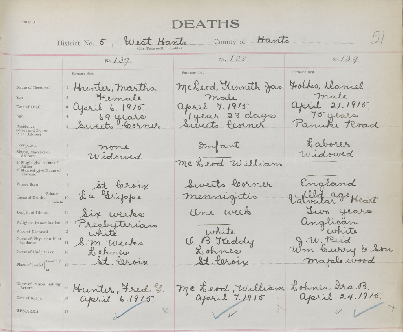 Male Death Registration: Year: 1915 book: 36 page: 51 number: 139