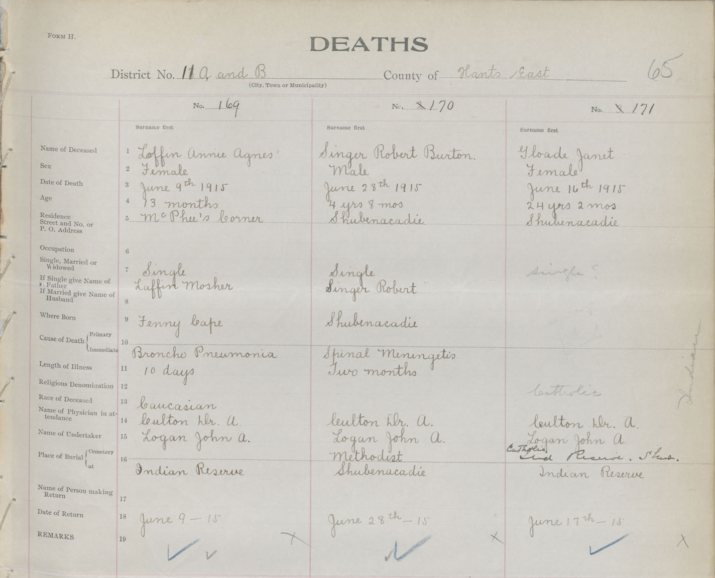 Female Death Registration: Year: 1915 book: 36 page: 65 number: 171