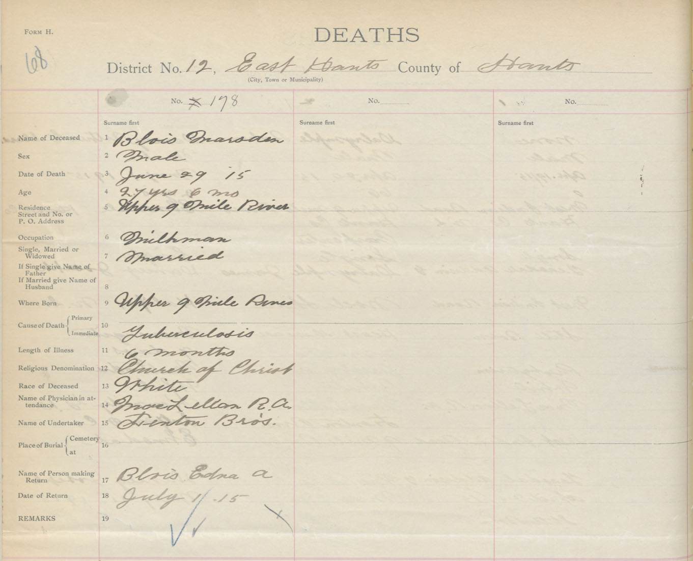 Male Death Registration: Year: 1915 book: 36 page: 68 number: 178