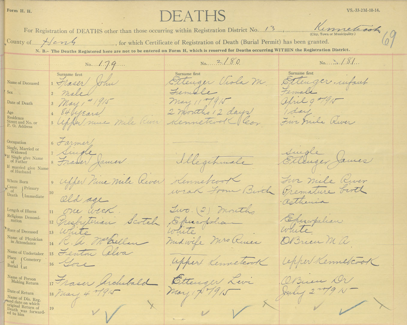 Male Death Registration: Year: 1915 book: 36 page: 69 number: 179