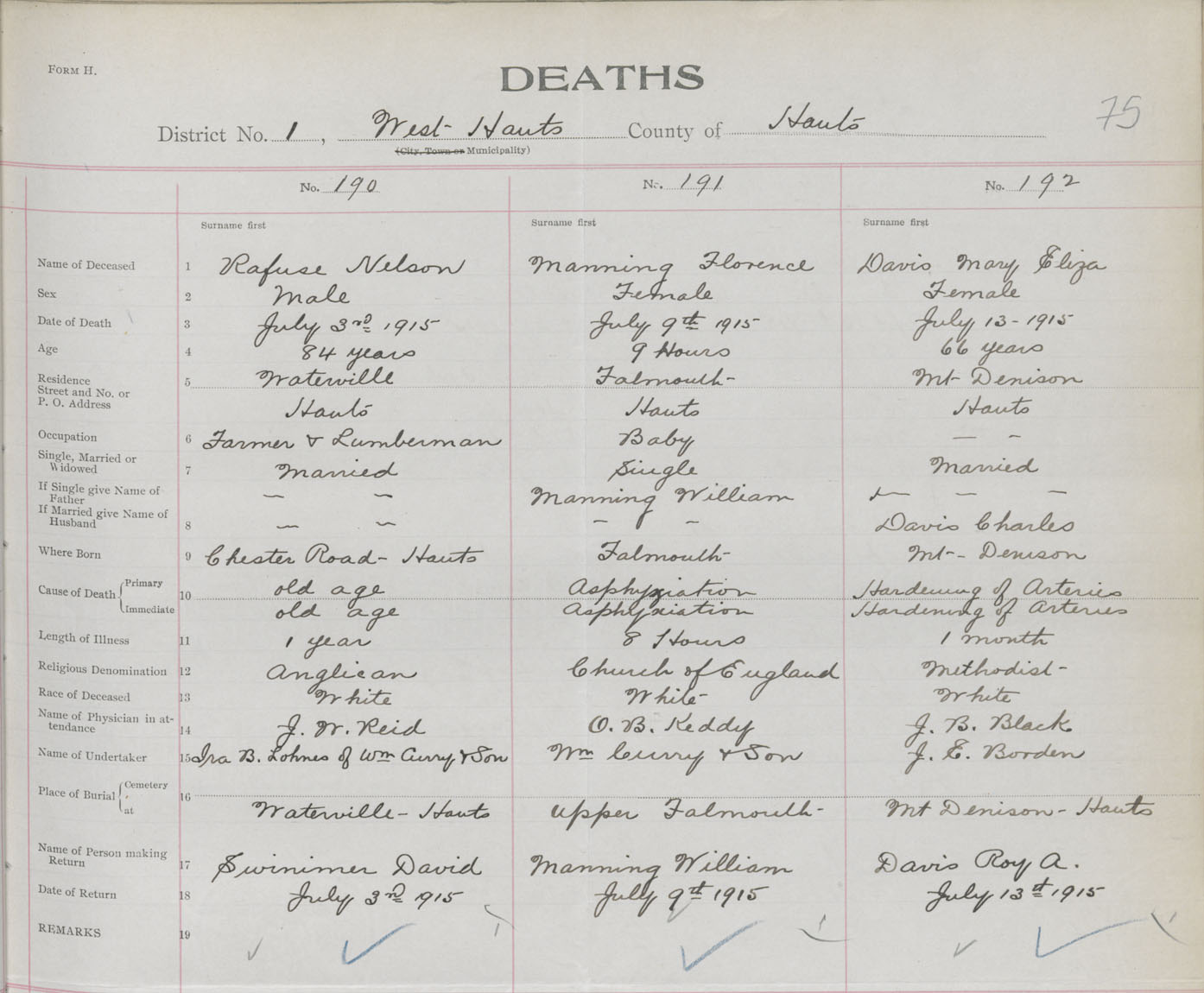 Male Death Registration: Year: 1915 book: 36 page: 75 number: 190