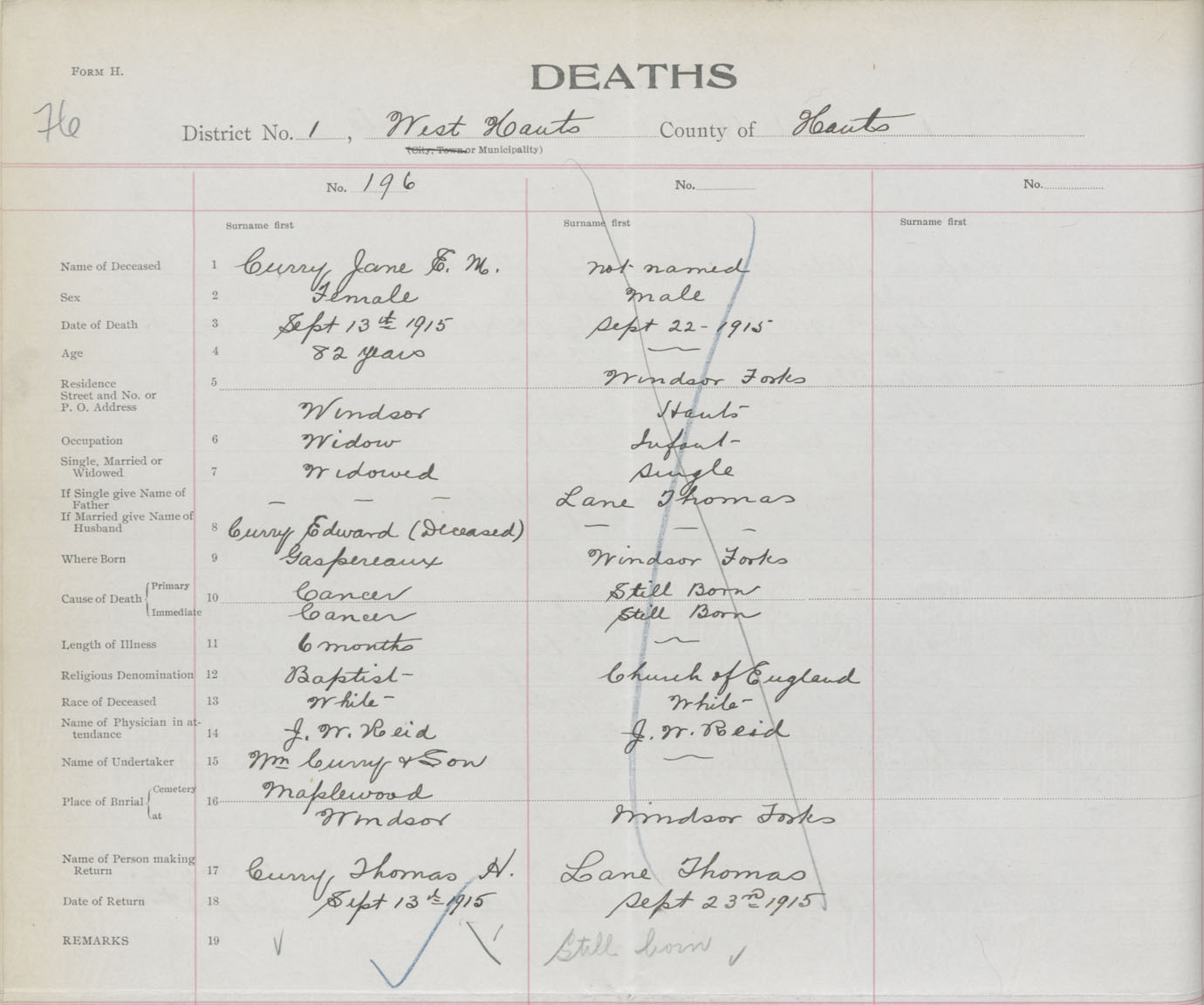 Female Death Registration: Year: 1915 book: 36 page: 76 number: 196