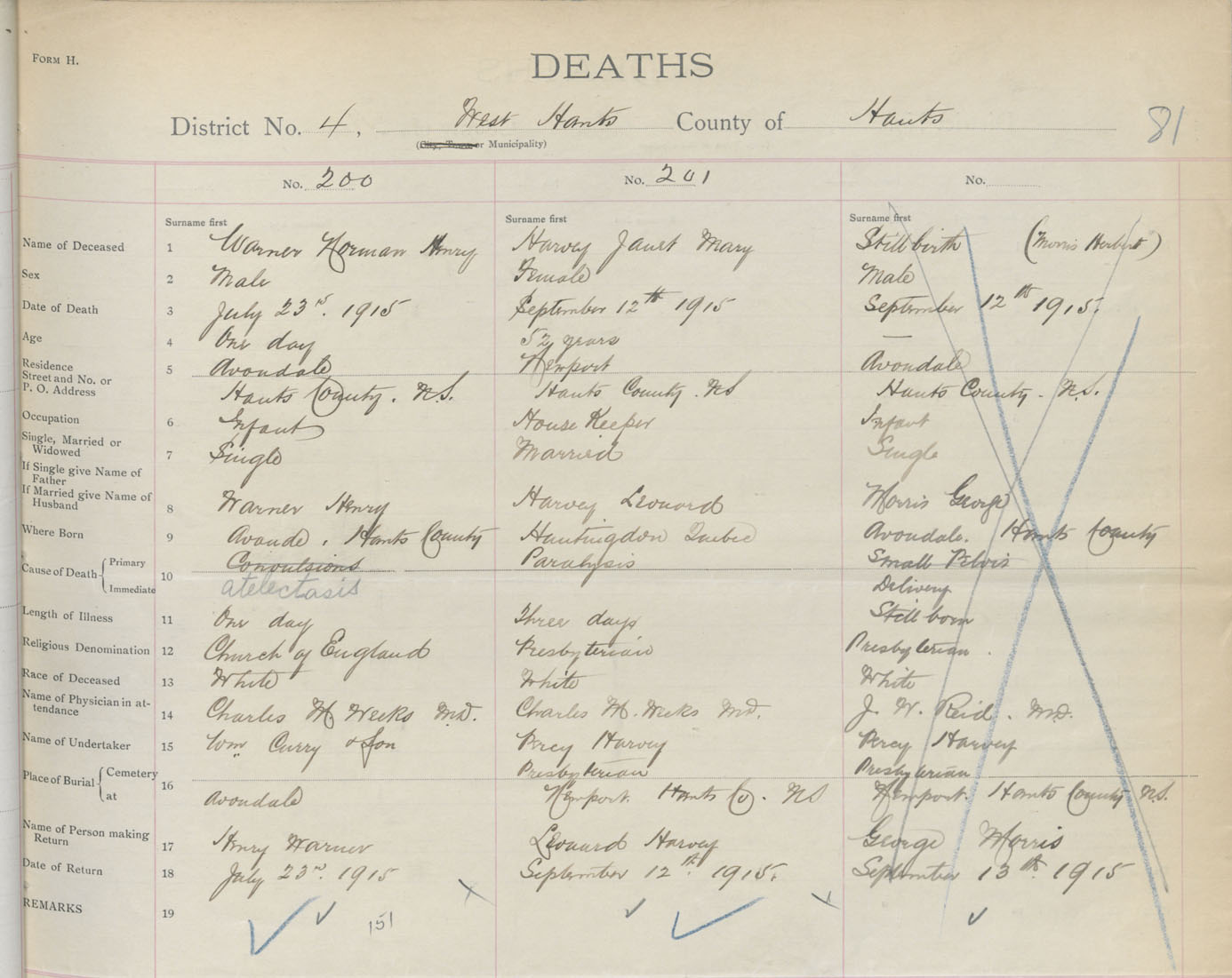 Male Death Registration: Year: 1915 book: 36 page: 81 number: 200