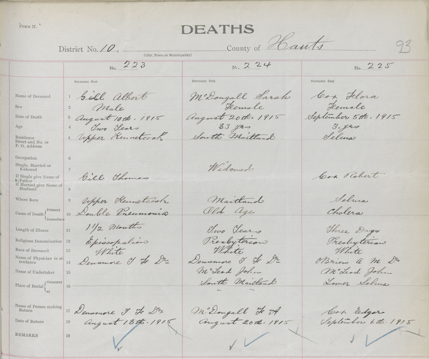 Male Death Registration: Year: 1915 book: 36 page: 93 number: 223