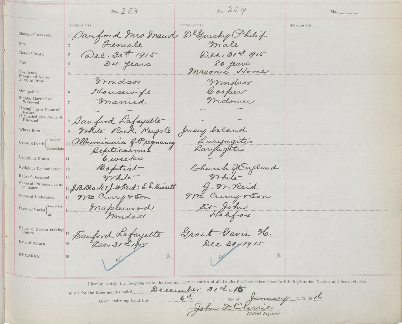 Female Death Registration: Year: 1915 book: 36 page: 107 number: 258