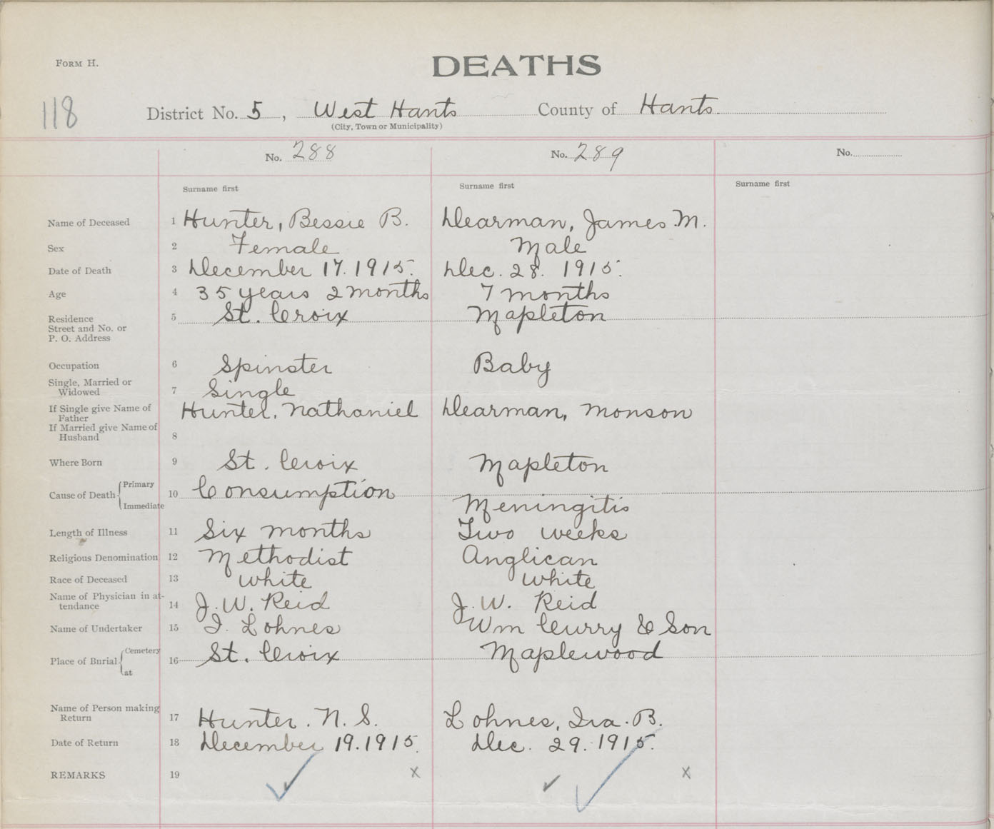 Male Death Registration: Year: 1915 book: 36 page: 118 number: 289