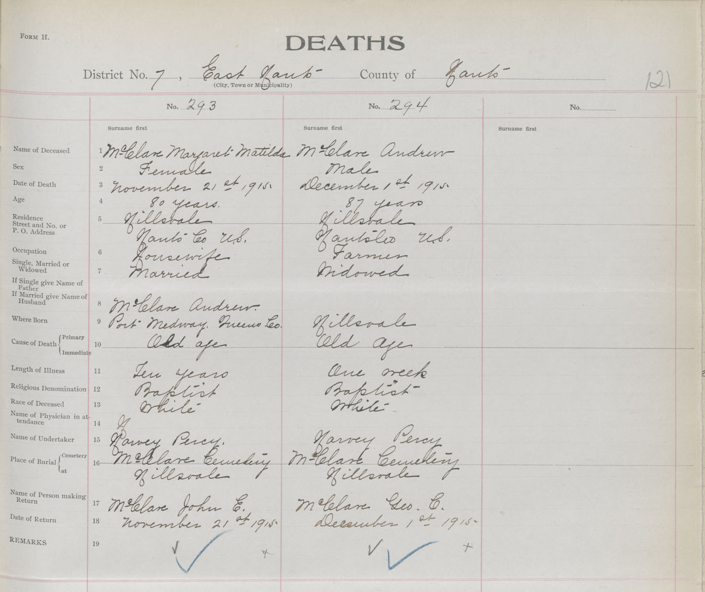 Male Death Registration: Year: 1915 book: 36 page: 121 number: 294