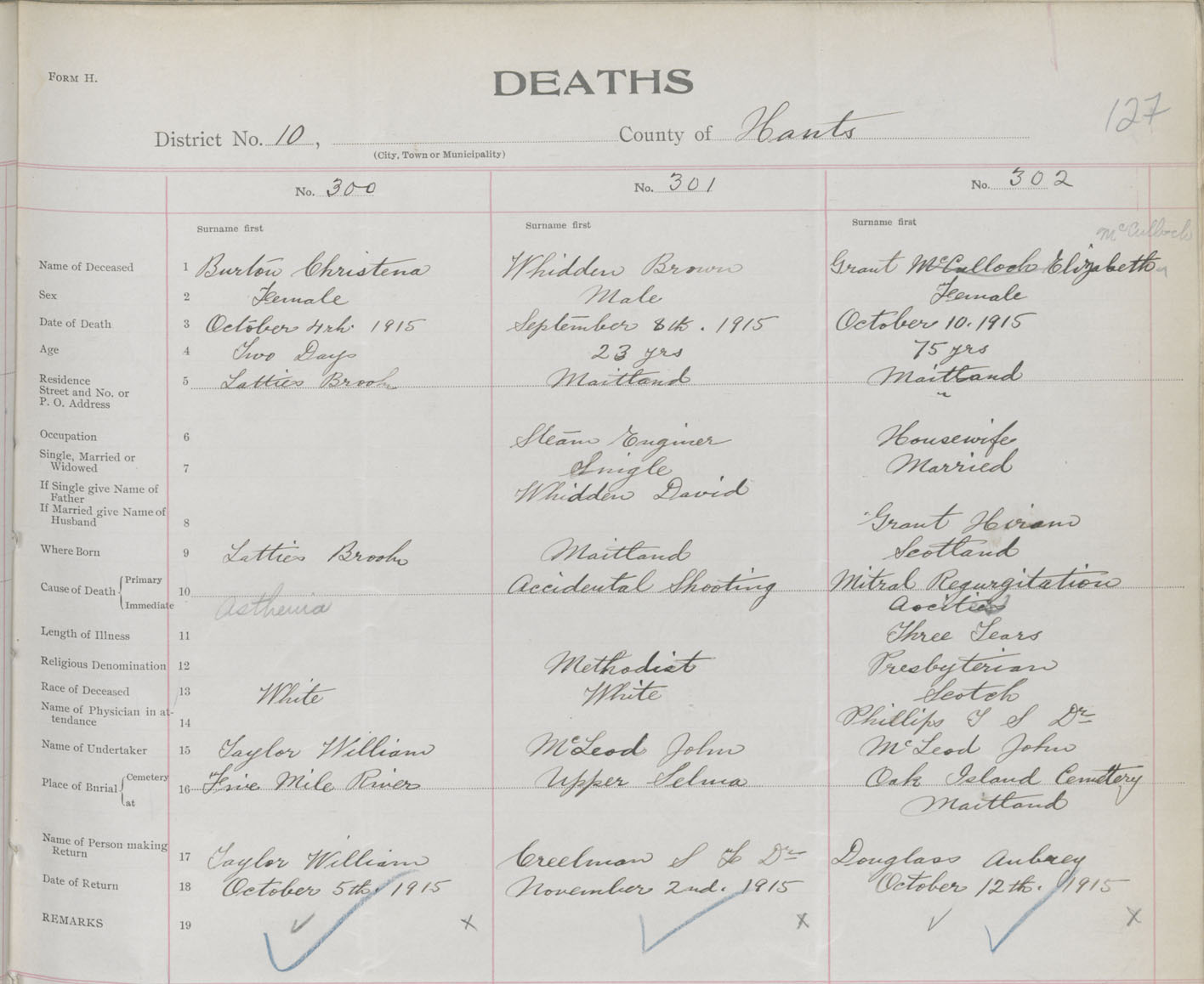 Female Death Registration: Year: 1915 book: 36 page: 127 number: 302