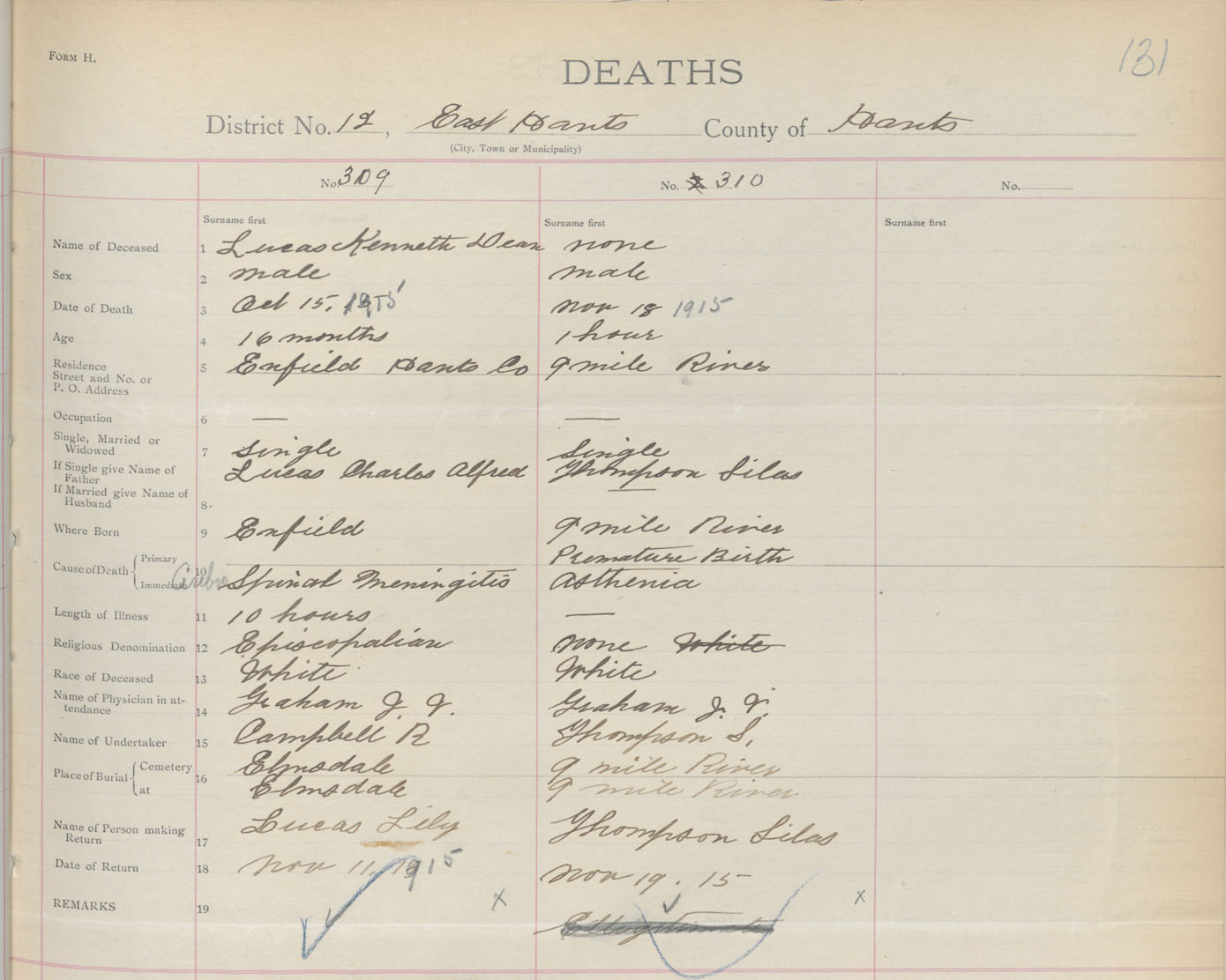 Male Death Registration: Year: 1915 book: 36 page: 131 number: 310